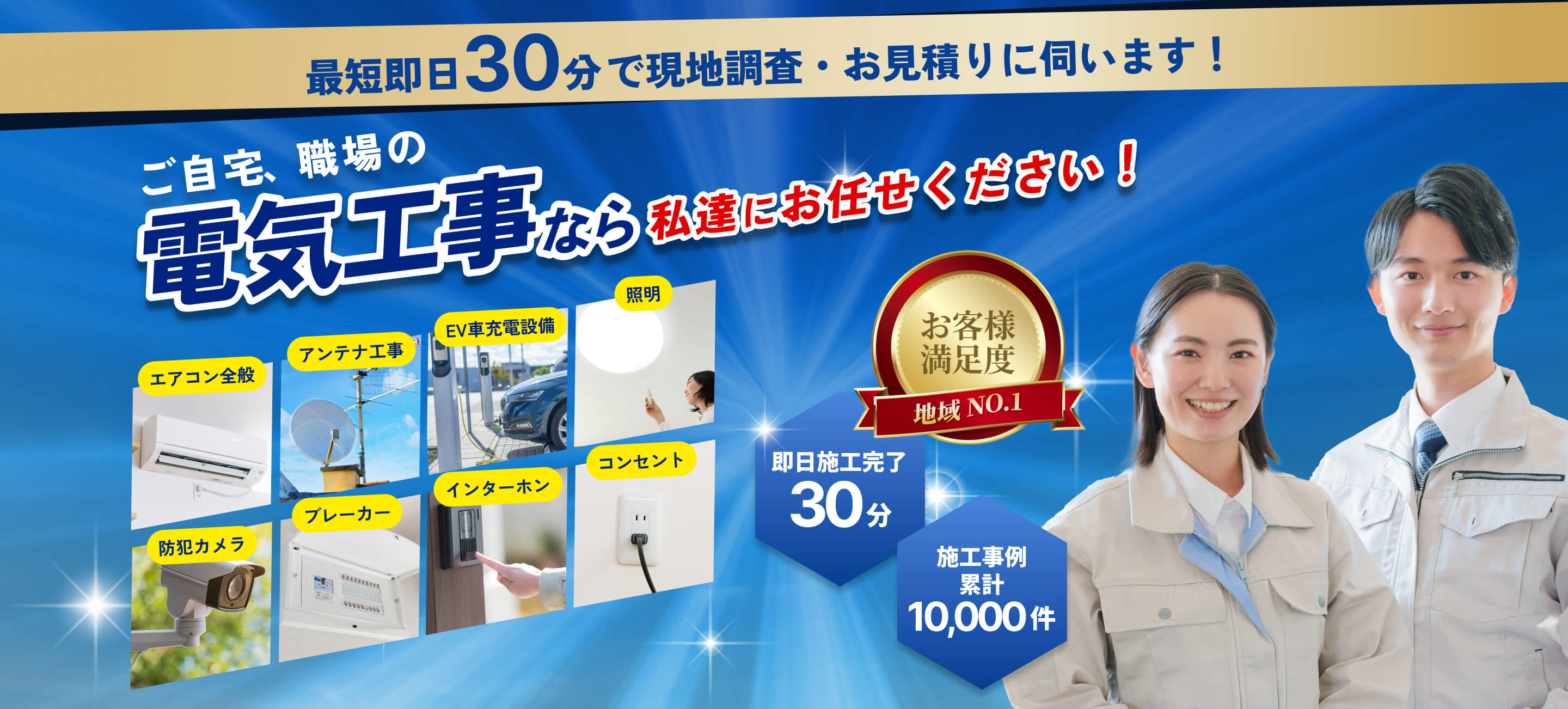 自社スタッフが最初から最後まで責任を持って対応致します。電気修理の品質はもちろんのこと、接客品質も地域NO.1を目指しております。ご自宅の電気修理のことなら、岡崎電気工事店にご相談ください。